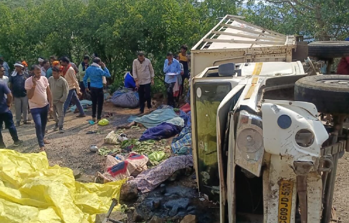 तेज रफ्तार पिकअप वाहन पलटने से बड़ा हादसा; तीन मजदूरों