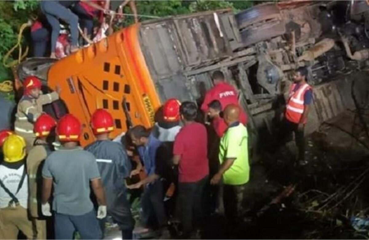 सड़क हादसा; श्रद्धालुओं से भरी बस खाई में जा गिरी,