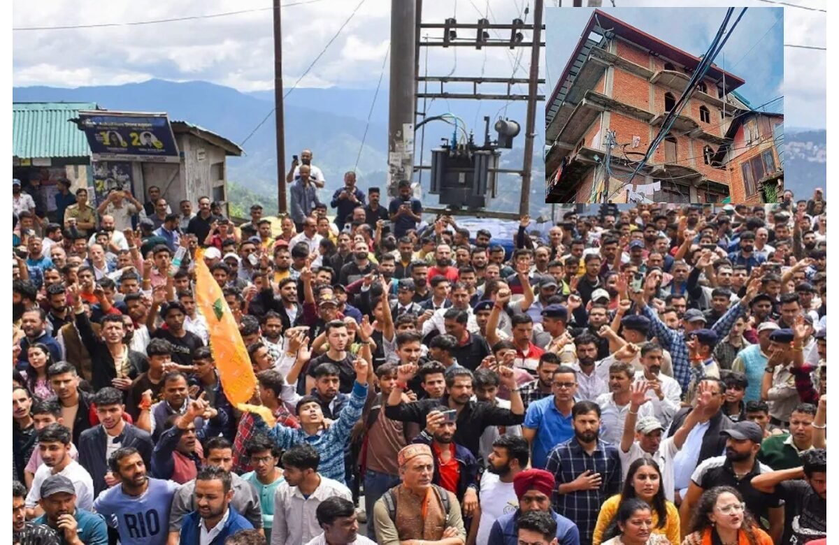 हिमाचल प्रदेश की राजधानी शिमला के संजौली स्थित मस्जिद में अवैध निर्माण के विरोध में हिंदूवादी संगठनों का उग्र प्रदर्शन