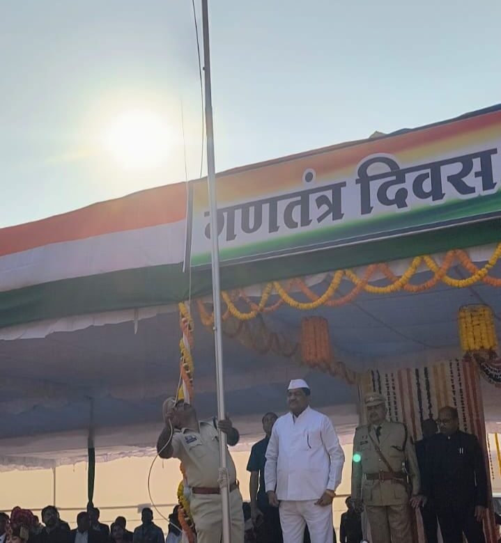 बिलासपुर। छत्तीसगढ़ के मुख्यमंत्री विष्णुदेव साय ने 77वें गणतंत्र दिवस के अवसर पर बिलासपुर के पुलिस परेड मैदान में राष्ट्रीय