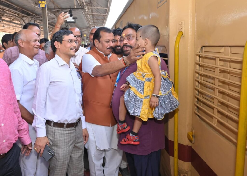 दुर्ग। दुर्ग लोकसभा की 9 विधानसभाओं के रामभक्तों को लेकर आस्था स्पेशल ट्रेन दुर्ग रेलवे स्टेशन से दोपहर 12:20 पर रवाना हुई। ट्रेन को सांसद विजय बघेल, विधायक डोमन लाल कोरसेवाडा, ललित चंद्राकर, अजय तिवारी, राम मंदिर दर्शन समिति के सुरेन्द्र कौशिक, राजेन्द्र कुमार पाध्ये ने हरी झंडी दिखाकर रवाना किया। इस दौरान जिला उपाध्यक्ष दिलीप साहू, जिला महामंत्री योगेंद्र सिंह, प्रेमलाल साहू, जिला मंत्री आशीष निमजे, विजेंद्र सिंह, कार्यालय मंत्री मनोज सोनी उपस्थित रहे। यात्रा करने वाले राम भक्त ढोल मंजीरे लेकर जय श्री राम के घोष के साथ श्रद्धा और भक्ति के साथ रवाना हुए। पूरा दुर्ग रेलवे स्टेशन राममय बन गया।