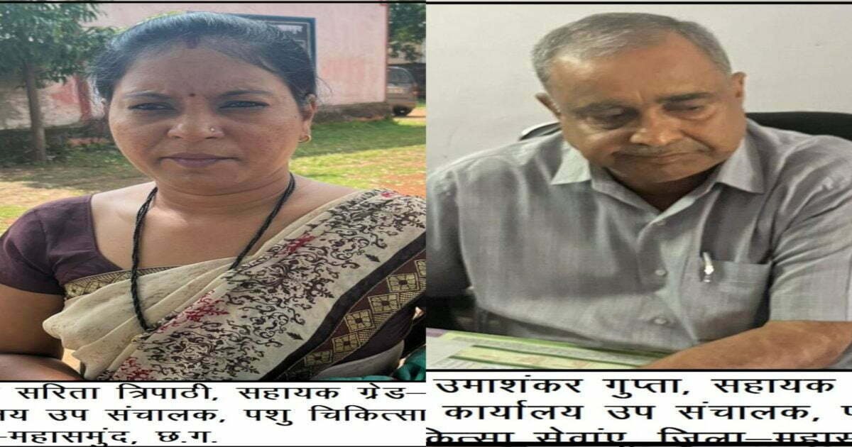 गिरफ्तार किए गए बाबुओं का नाम सरिता त्रिपाठी और उमाशंकर गुप्ता है। दोनों बाबू उप संचालक पशु चिकित्सा सेवाएं महासमुंद के कार्यालय में कार्यरत हैं। बताया जा रहा है कि एक महिला कर्मचारी रिटायर होनो के बाद अपनी पेंशन और जीपीएफ निकालना चाहती थी, जिसके एवज में दोनों आरोपियों ने उनसे रिश्वत की डिमांड की थी। आरोपियों ने पहली किश्त के रूप में पार्थिया से 57000 रुपये ले चुके थे। उसके बावजूद वो 40 हजार रुपयों की और डिमांड कर रहे थे।