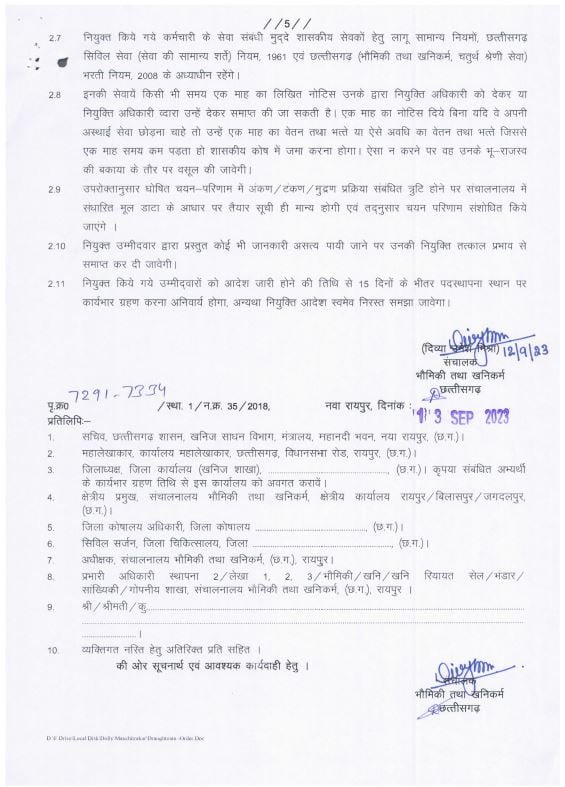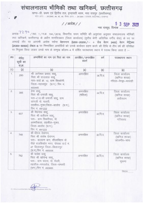 Appointment and posting: खनिज विभाग में चयनित अभ्यर्थियों की नियुक्ति और पदस्थापना आदेश जारी, देखिए सूची