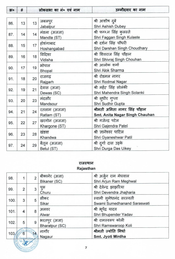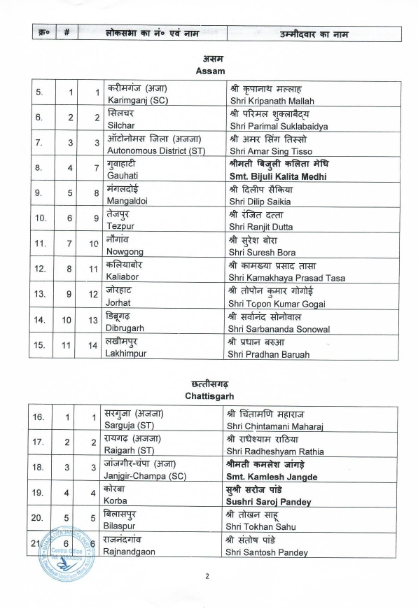 पार्टी की ओर से पहली लिस्ट में उत्तर प्रदेश की 80 में से 51 सीटों पर प्रत्याशियों के नामों का ऐलान किया है। पश्चिम बंगाल की 26, मध्य प्रदेश की 24, राजस्थान की 15, केरल की 12, तेलंगाना की 9, असम की 11, गुजरात की 15, झारखंड की 11, दिल्ली की 5, जम्मू कश्मीर की 2, उत्तराखंड की 3 सीट के अलावा छत्तीसगढ़, गोवा, अंडमान और दमन दीव की 1-1 सीटों पर भी नामों का ऐलान किया है।