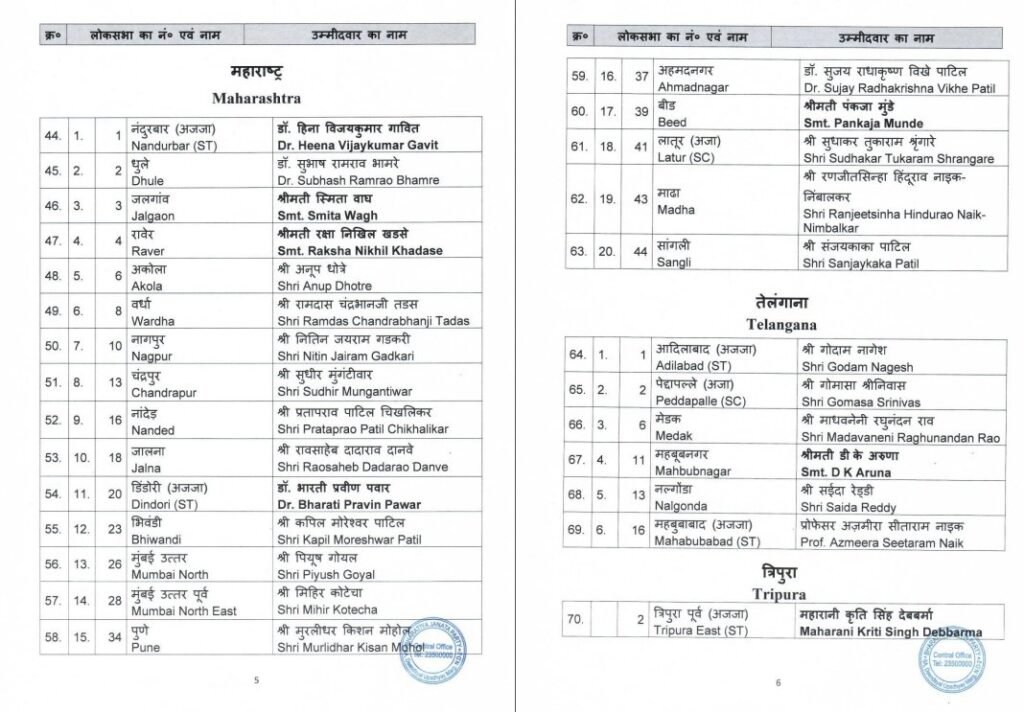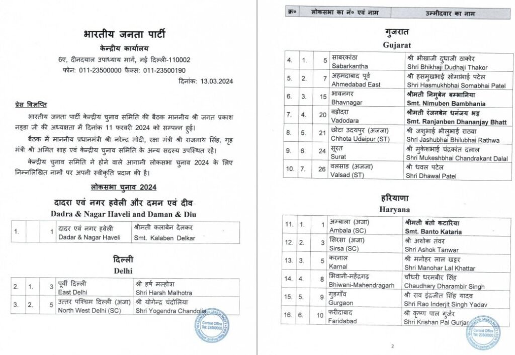13/03/2024 BJP 2nd List: बीजेपी ने 72 उम्मीदवारों की दूसरी लिस्ट की जारी, गडकरी सहित कई मंत्रियों का नाम शामिल Admin September 26, 2022 लोकसभा चुनाव 2024 के लिए बीजेपी ने 72 उम्मीदवारों की दूसरी लिस्ट जारी कर दी है। बीजेपी ने केन्द्रीय मंत्री नितिन गडकरी सहित कई मंत्रियों को इस चुनाव में फिर से उतारा गया है। देखिए लिस्ट Related News: Weather: इन राज्यों में अगले कुछ दिन भारी बारिश, IMD ने जारी किया अलर्ट सरकारी नौकरियों में महिलाओं को मिलेगा 35 फीसदी आरक्षण, चुनाव के पहले बड़ा फैसला प्याज फिर रुलाने लगा, नवरात्रि के बाद बढ़ गए दाम, 70 रुपये किलो तक पहुंचा