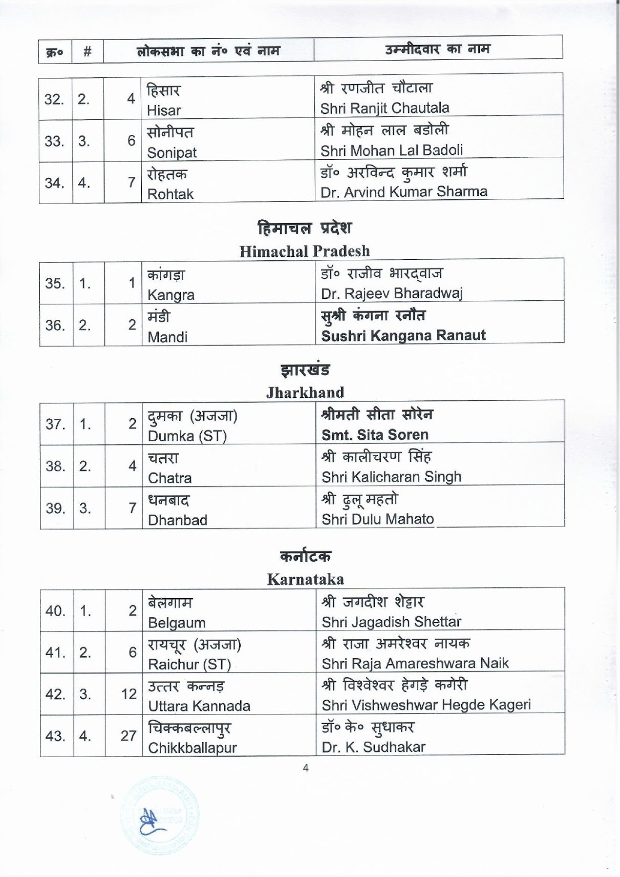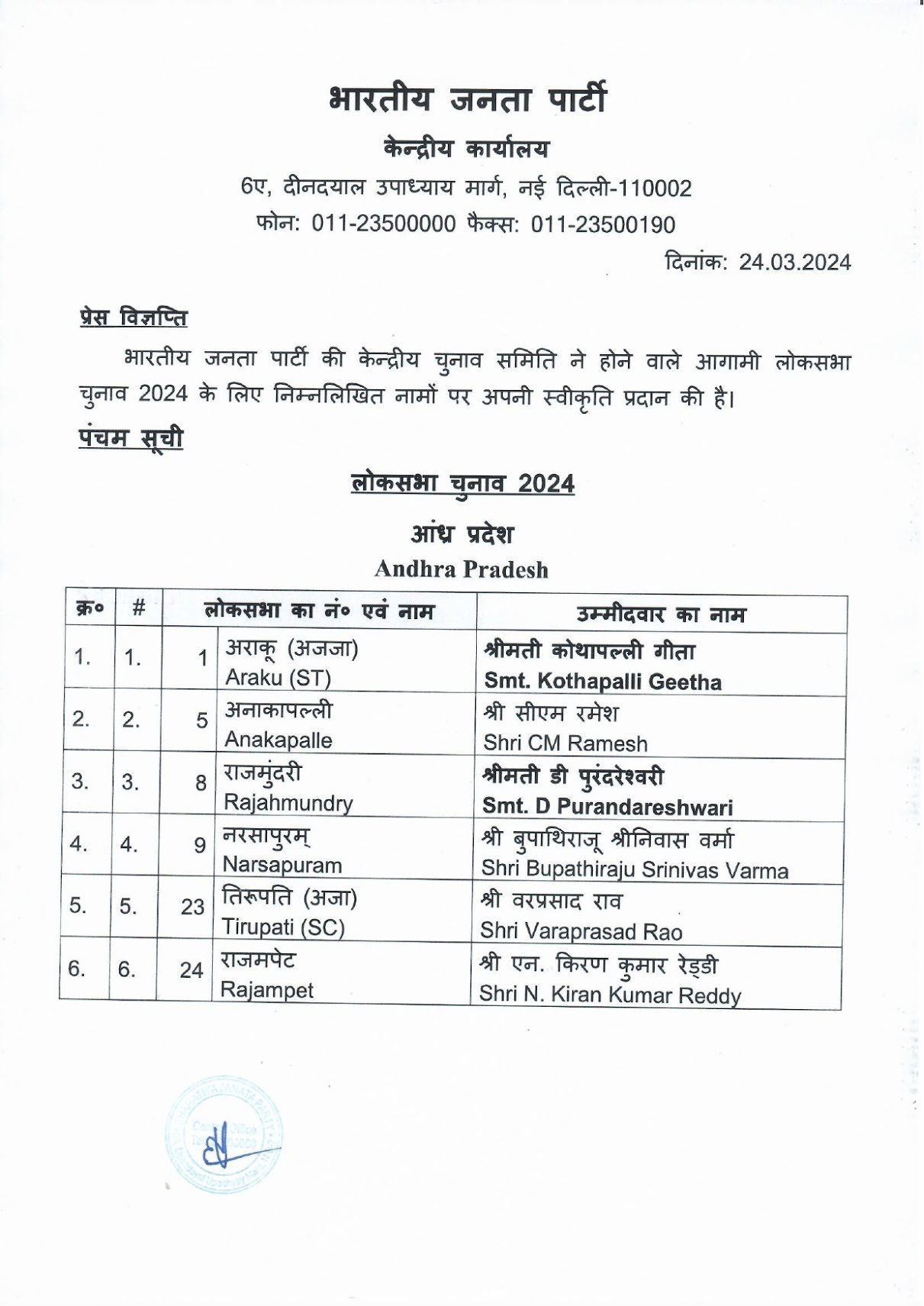 Breaking: बीजेपी की 5वीं लिस्ट जारी, कंगना रनौत को इस सीट से मिली टिकट, ‘राम’ भी लड़ेंगे चुनाव