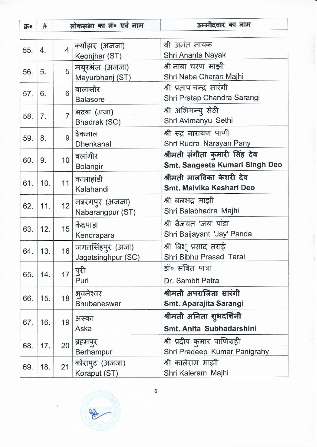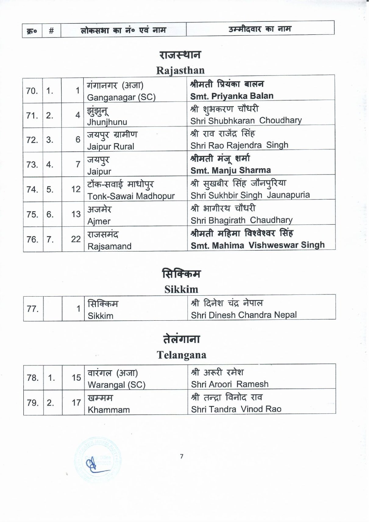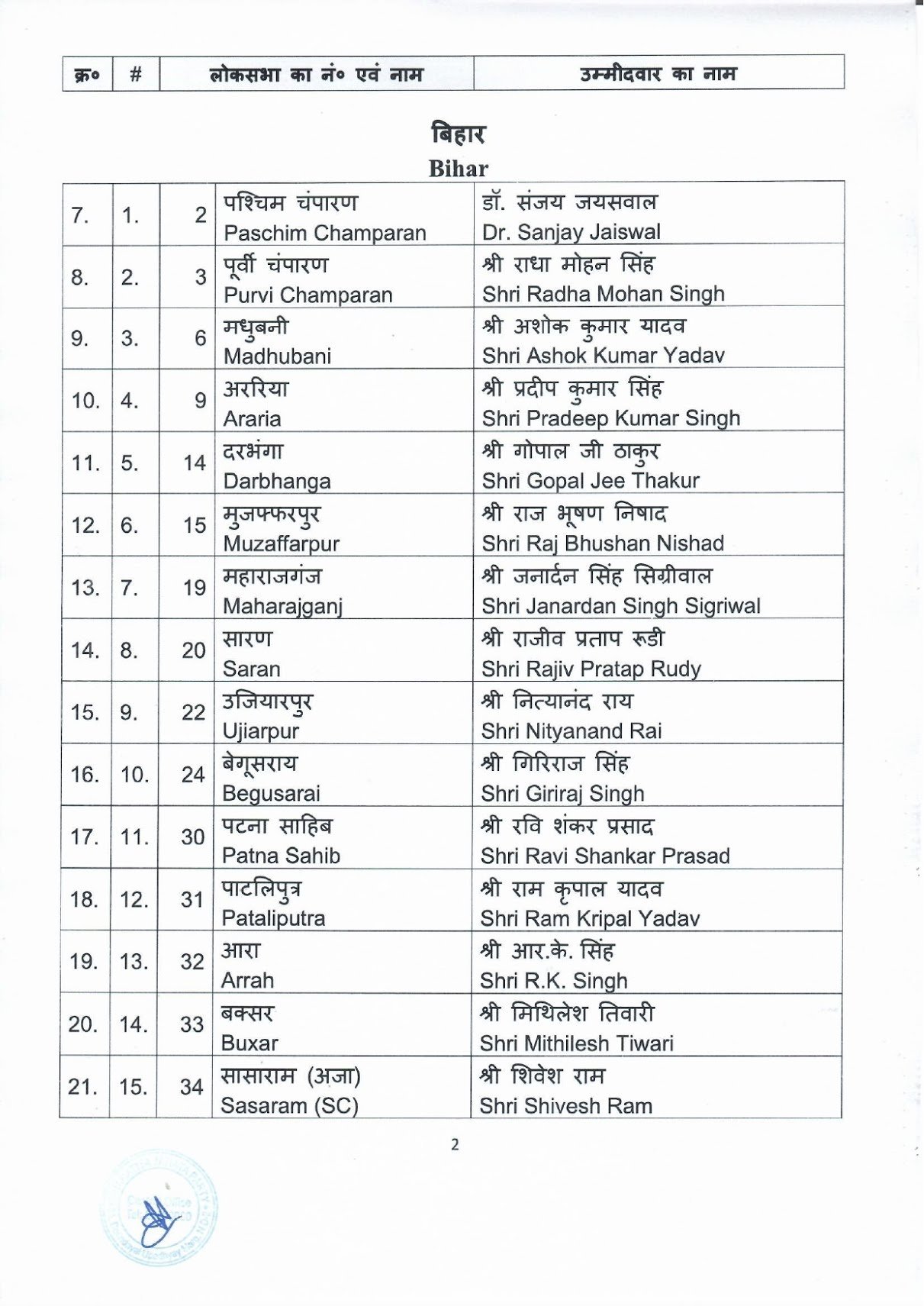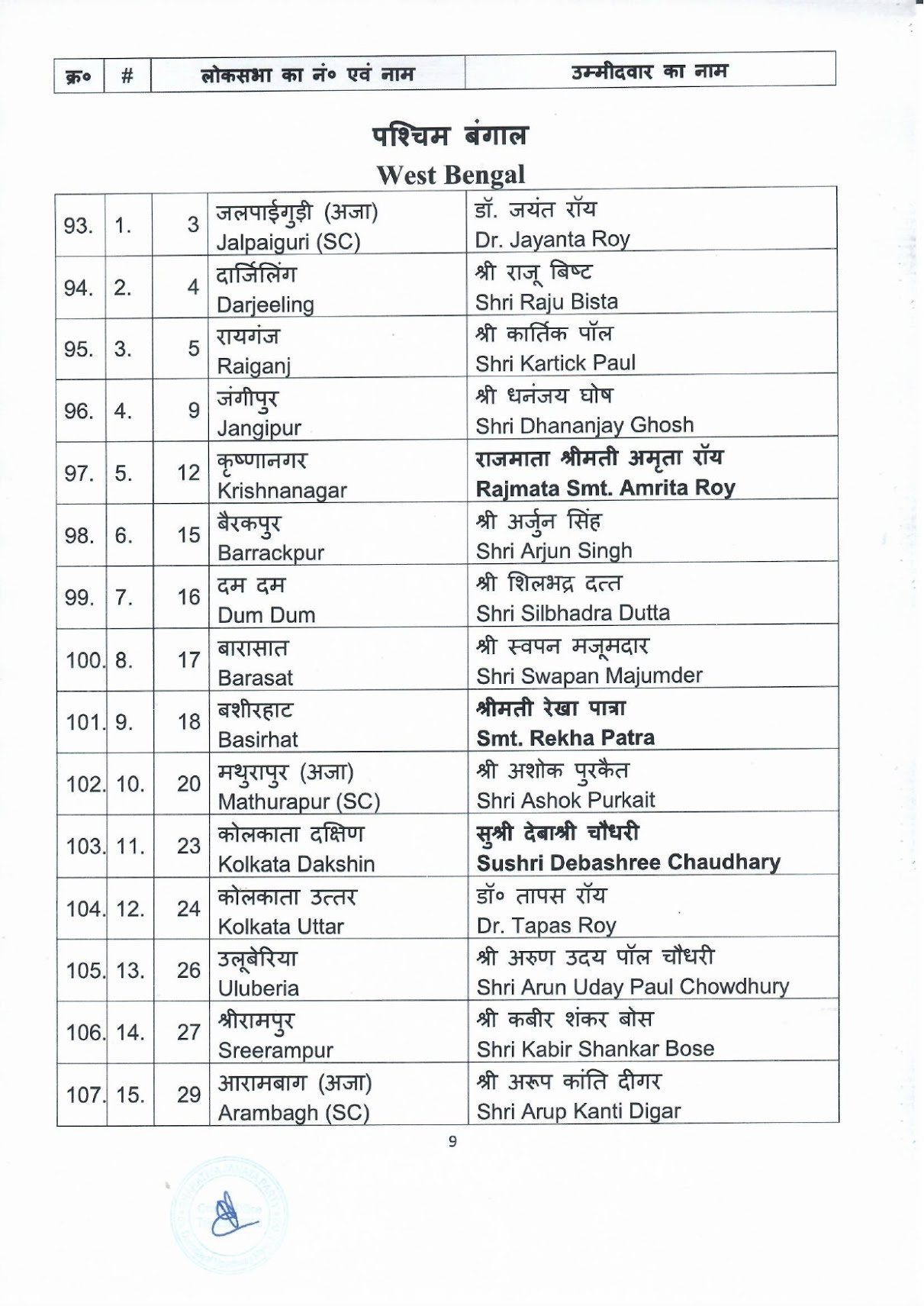 फिलहाल कैसरगंज सीट के लिए प्रत्याशी का एलान नहीं हुआ है. इस सीट से बृजभूषण शरण सिंह सांसद हैं. तृणमूल छोड़कर एक बार फिर बीजेपी का दामन थामने वाले अर्जुन सिंह को पश्चिम बंगाल के बैरकपुर से प्रत्याशी बनाया गया है.