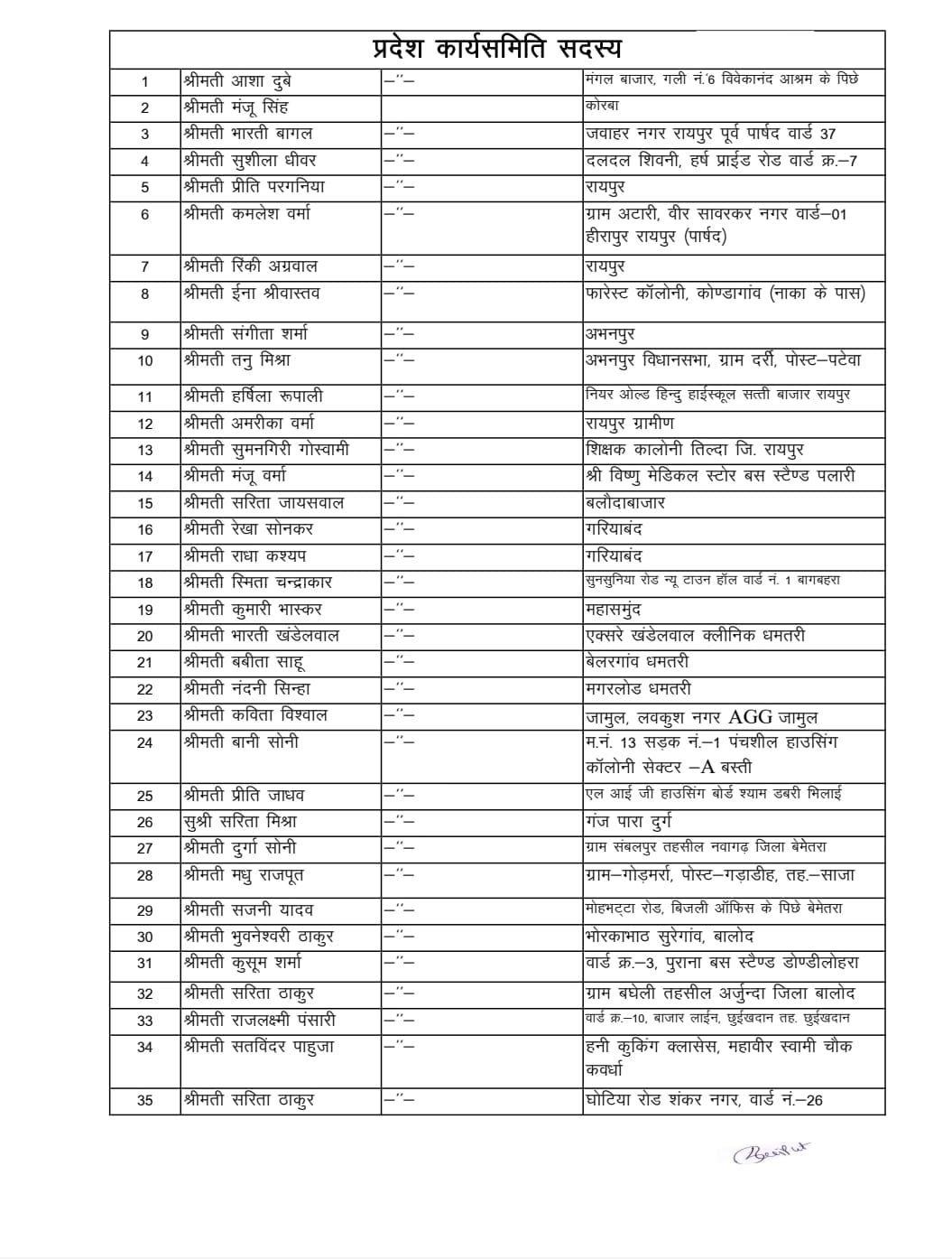 बीजेपी महिला मोर्चा ने गुरुवार को अपनी प्रदेश कार्यकारिणी घोषित कर दी है।