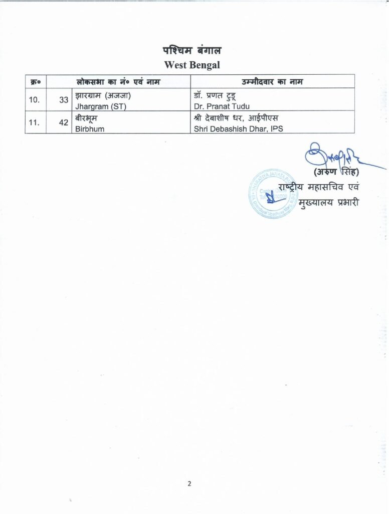 लोकसभा चुनाव 2024 के लिए बीजेपी ने उम्मीदवारों की आठवीं सूची जारी कर दी है। बीजेपी ने इस लिस्ट में 3 राज्यों की 11 लोकसभा सीटों पर उम्मीदवारों की घोषणा की है। इस सूची में दूसरे दलों से आए नेताओं को भी पार्टी ने टिकट दी है।