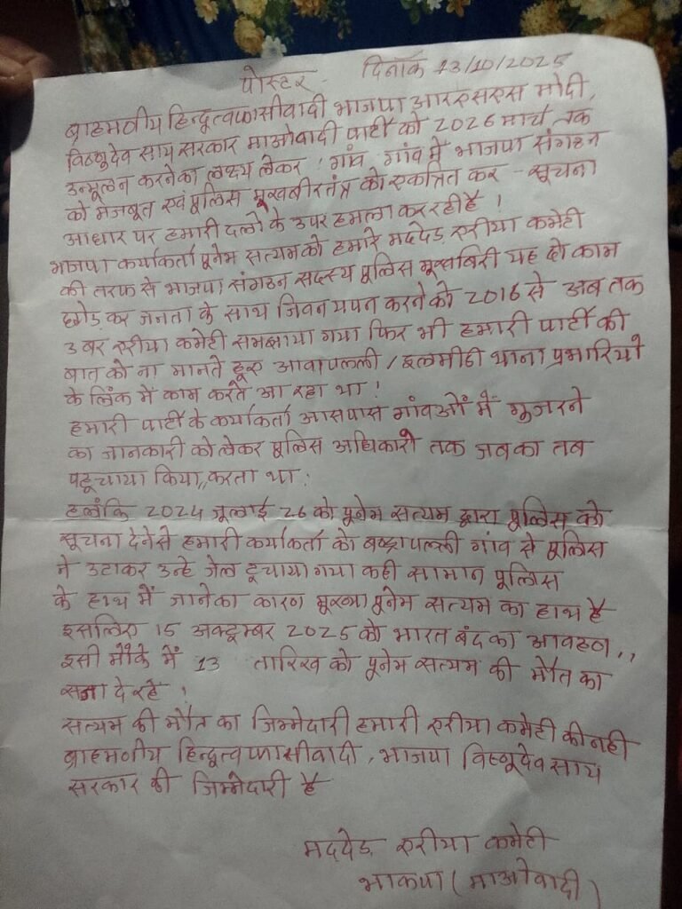 BJP नेता की नक्सलियों ने की हत्या, पर्चा जारी कर कहा…; 6 दिन के भीतर 3 को उतारा मौत के घाट