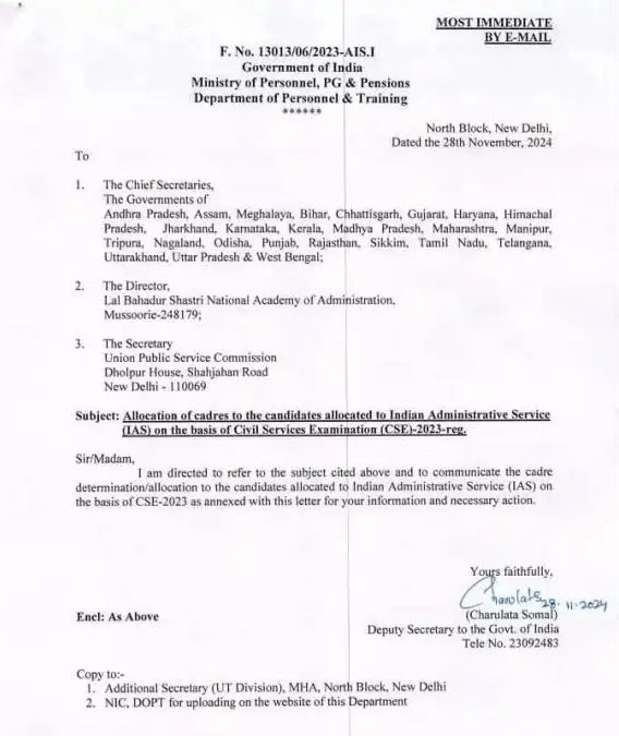 IAS Cadre: 2024 बैच के IAS को कैडर अलॉट, छत्तीसगढ़ को मिले 3 नए आईएएस अफसर