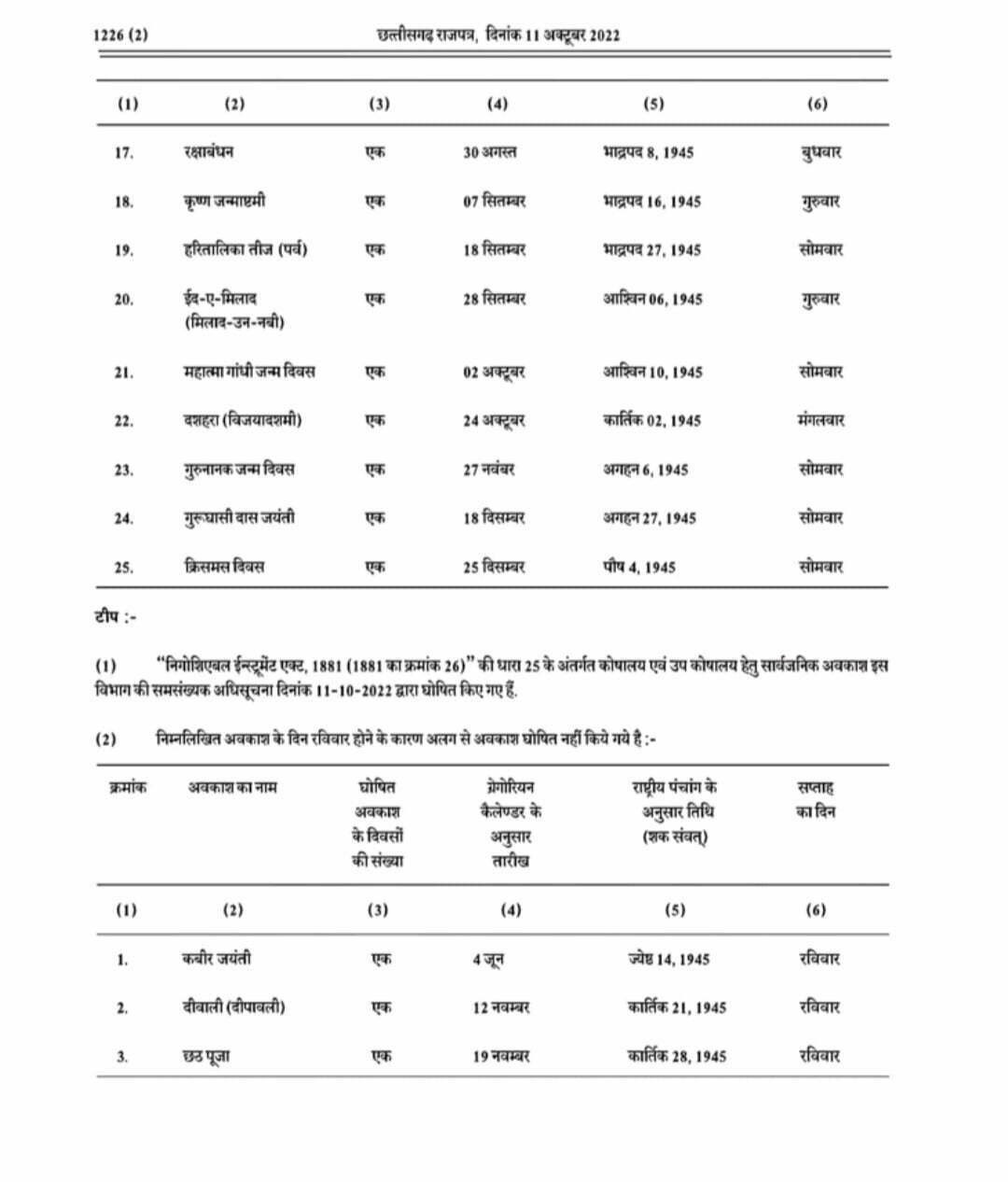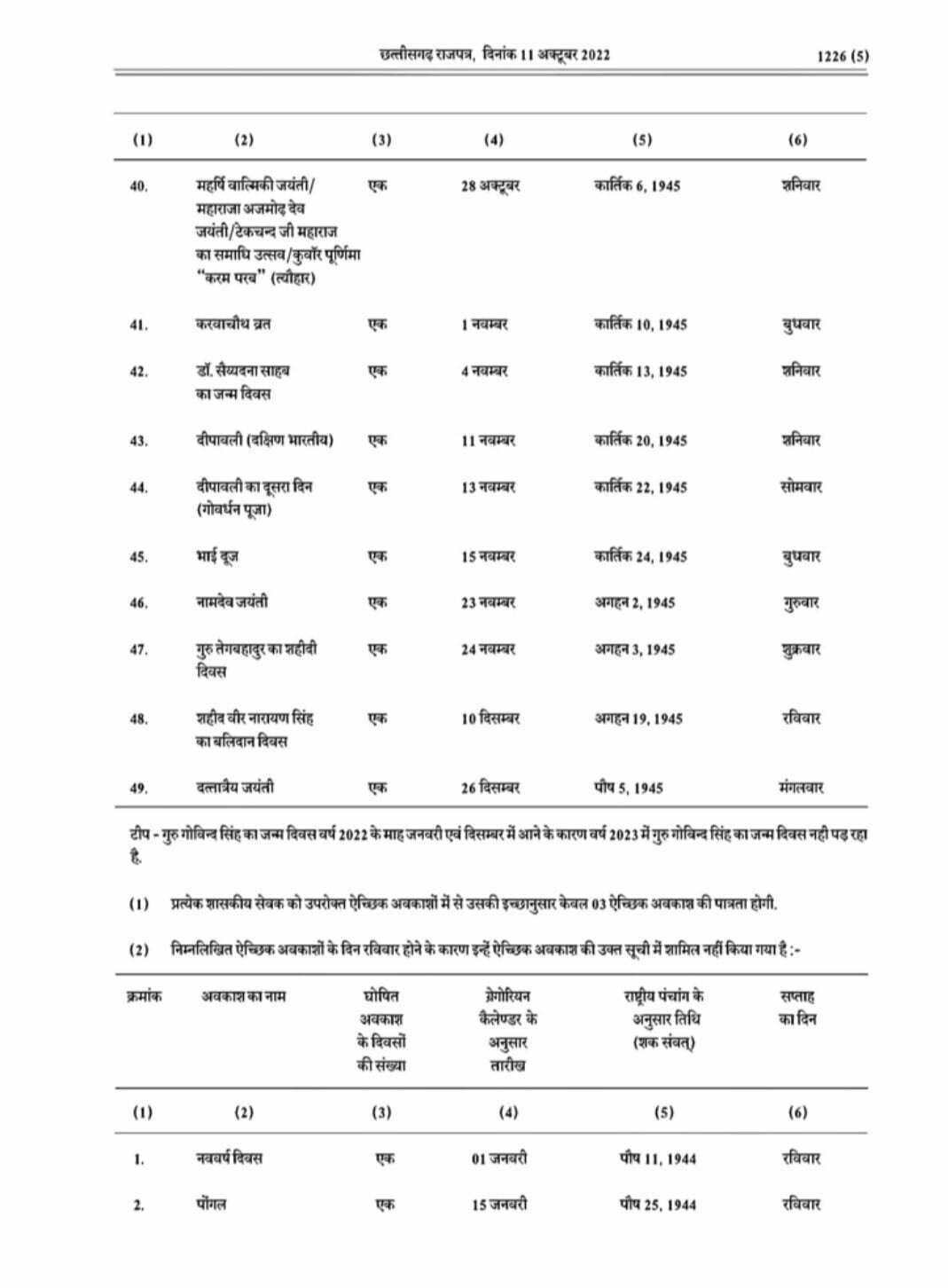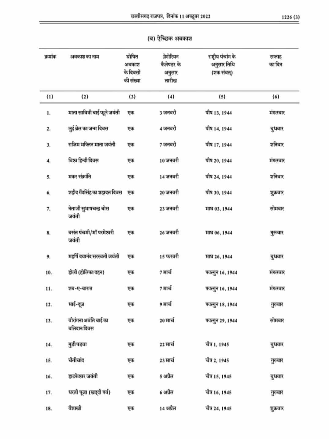 छत्तीसगढ़ में साल 2023 की छुट्टियों का कैलेंडर जारी, सिर्फ इतने दिन ही मिलेगा कर्मचारियों को अवकाश, यहां देखिए पूरी सूची