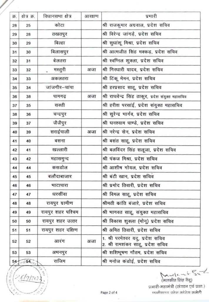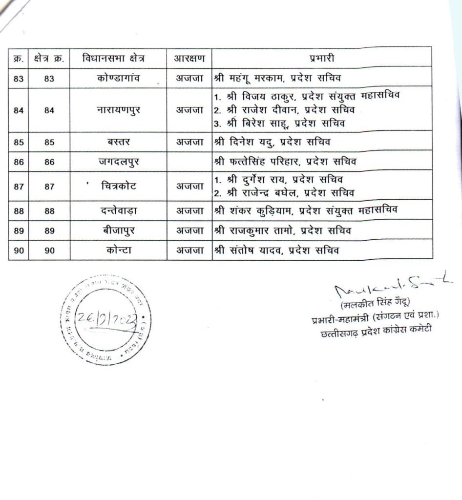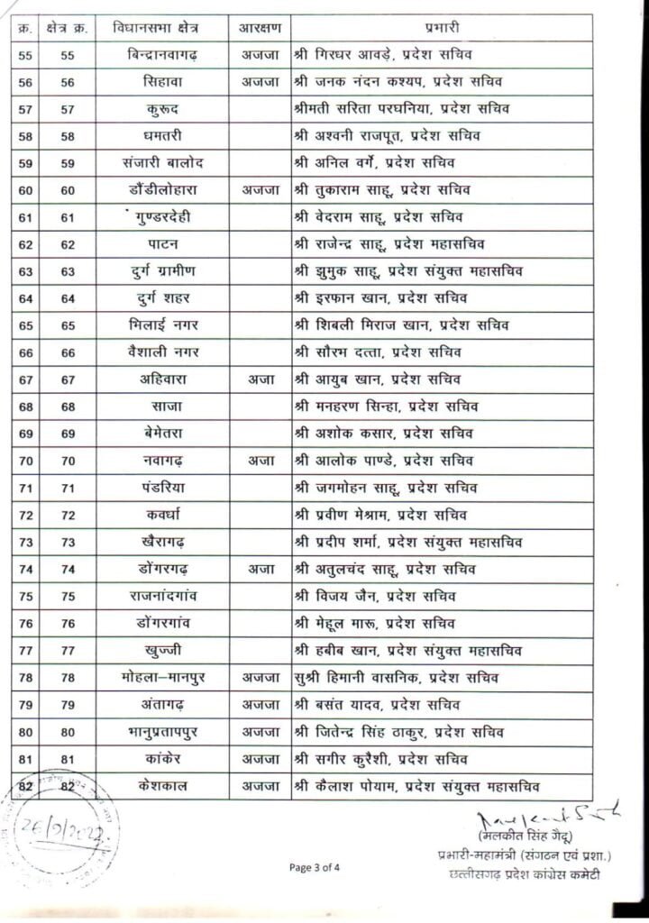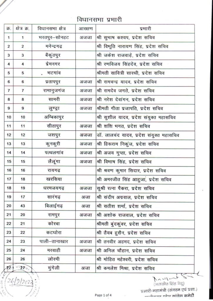 26/09/2023 Breaking: कांग्रेस ने लोकसभा, विधानसभा और जिला प्रभारियों की सूची की जारी, देखिए किसे कहां की मिली जिम्मेदारी Admin September 26, 2022 छत्तीसगढ़ में इस साल के अंत में विधानसभा चुनाव होना है। चुनाव के मद्देनजर कांग्रेस ने लोकसभा, विधानसभा और जिला प्रभारियों की नियुक्ति की है। देखिए सूची Related News: Big Breaking: नंदकुमार साय कांग्रेस में हुए शामिल, CM भूपेश और मोहन मरकाम ने दिलाई सदस्यता ED Raid: छत्तीसगढ़ में CM के बेहद करीबियों के ठिकानों पर ED का छापा, भूपेश बघेल ने बताया बर्थडे गिफ्ट सीएम भूपेश ने ED, IT और CBI को बताया लोकतंत्र के लिए खतरा, अडानी पर दिया ये सनसनीखेज बयान