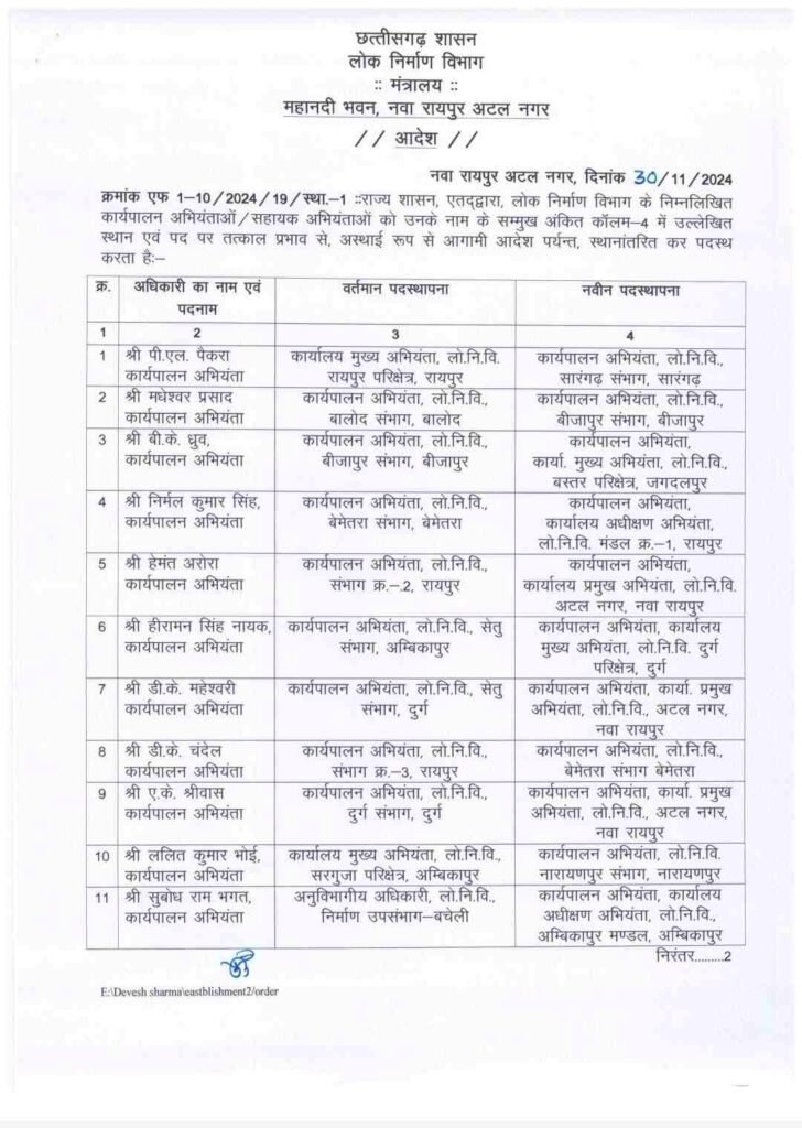 Transfer: लोक निर्माण विभाग में बड़े पैमाने पर तबादले, बदले गए कई बड़े अफसर, देखिए लिस्ट