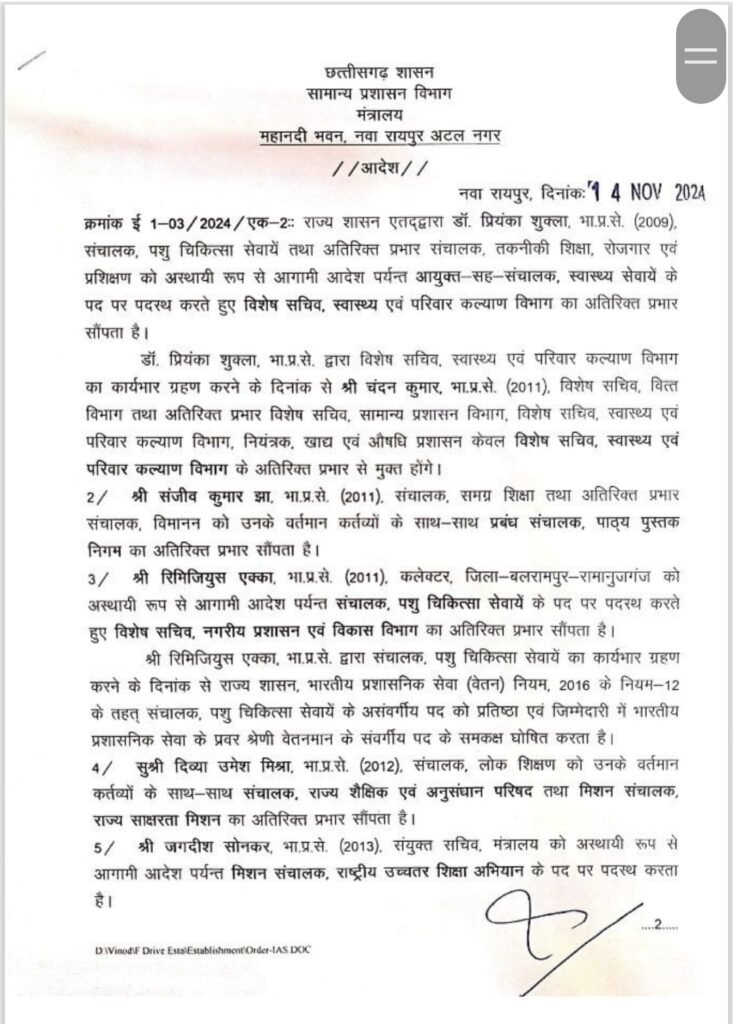 छत्तीसगढ़ में एक बार फिर से राज्य सरकार ने भारतीय प्रशासनिक सेवा (IAS) के 7 अफसरों का तबादला किया है। देखिए लिस्ट