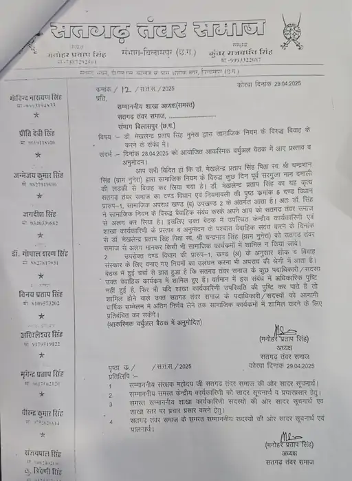 समाज ने यह भी नियम बनाया है कि शोक और विवाह संस्कारों में भाग लेने वाले व्यक्तियों पर भी कार्रवाई होगी, यदि वे नियमों का उल्लंघन करते हैं। बैठक में चर्चा हुई कि कुछ पदाधिकारी और सदस्य डॉ. सिंह के विवाह समारोह में शामिल हुए थे। हालांकि, इसकी पुष्टि नहीं हुई, लेकिन समाज ने चेतावनी दी कि यदि ऐसी जानकारी सामने आती है, तो ऐसे लोगों को आगामी वार्षिक सम्मेलन में सामाजिक कार्यक्रमों से प्रतिबंधित किया जाएगा।