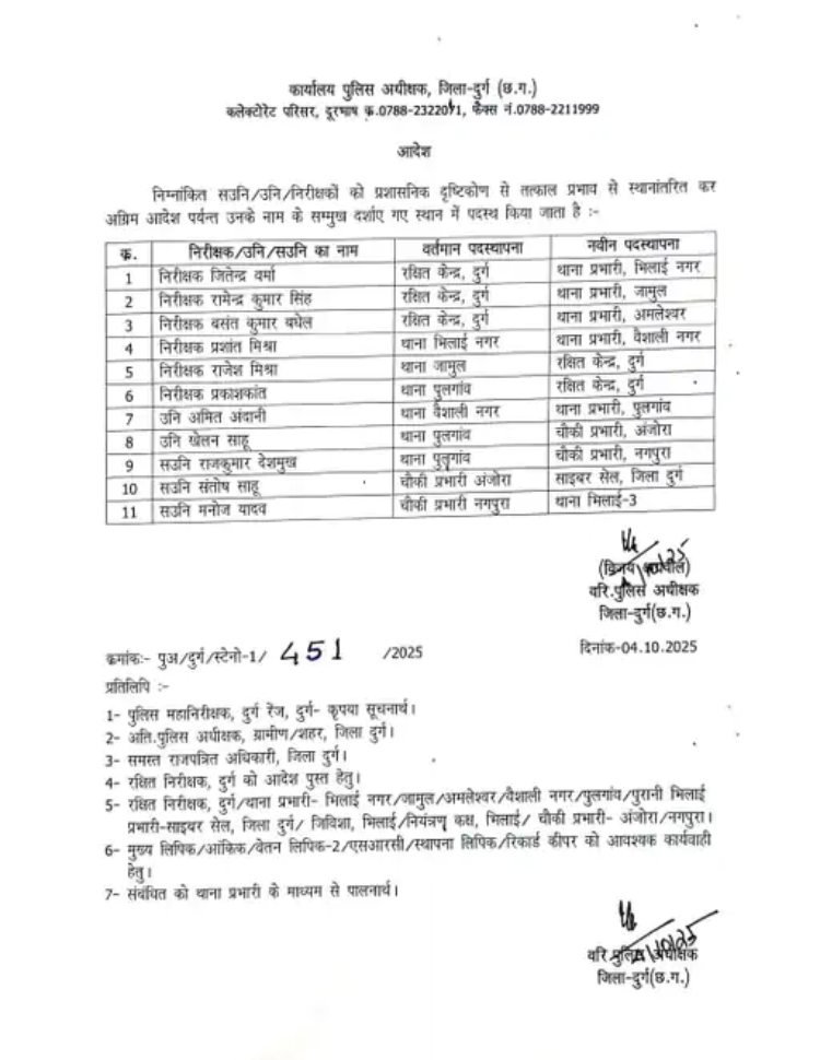 Police Transfer: आधा दर्जन TI सहित 11 थाना प्रभारियों का तबादला, देखिए लिस्ट