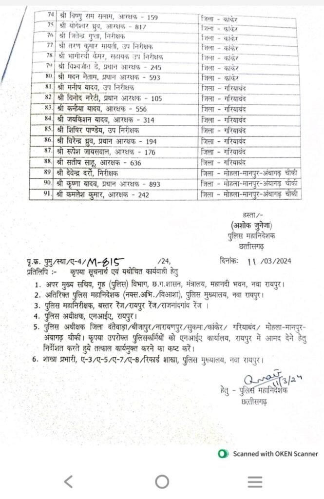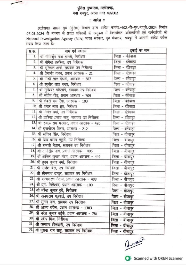 NIA में अटैच किए गए छत्तीसगढ़ पुलिस के जवान से लेकर अफसर तक, डीजीपी ने जारी किया आदेश, देखिए सूची
