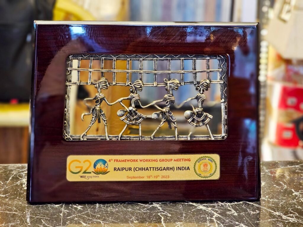 इसके साथ ही चिन्हारी के रूप उन्हें बस्तर आर्ट का उपहार भी दिया जाएगा। यहां ढोकरा कला से बनाई गई एक प्रतिमा फ्रेम में आबद्ध कर उन्हें प्रदान की जाएगी। इस कला का थीम चार आदिवासी युवतियों को लेकर है। वे नृत्यरत हैं और एक दूसरे का हाथ थामे हुए है। इस प्रतिमा से बस्तर की सुंदरता और लोकजीवन की समृद्धि की झलक डेलीगेट्स को मिल सकेगी। साथ ही हजारों वर्ष पुराने छत्तीसगढ़ के लोककलाकारों की प्रतिभा से भी वे वाकिफ हो सकेंगे।