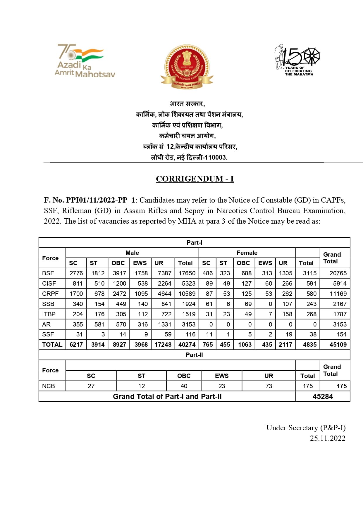 अगर आप सरकारी नौकरी की बाट जोह रहे हैं तो आपके लिए एक सुनहरा मौका है। केन्द्रीय कर्मचारी चयन आयोग (SSC) ने बंपर वैकेंसी निकाली है। जिसकी आवेदन प्रक्रिया अब जल्दी ही बंद होने वाली है। पहले पदों की संख्या 24,000 ही थी लेकिन SSC ने नोटिफिकेशन जारी कर बताया है कि 45,000 से ज्यादा पदों पर भर्तियां की जाएंगी।