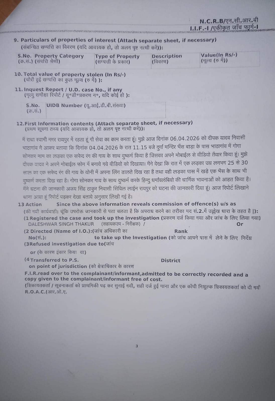 इंसानियत हुई शर्मसार, राजधानी में गाय के साथ कुकर्म, वीडियो वायरल होने के बाद बजरंगदल ने दर्ज कराई FIR