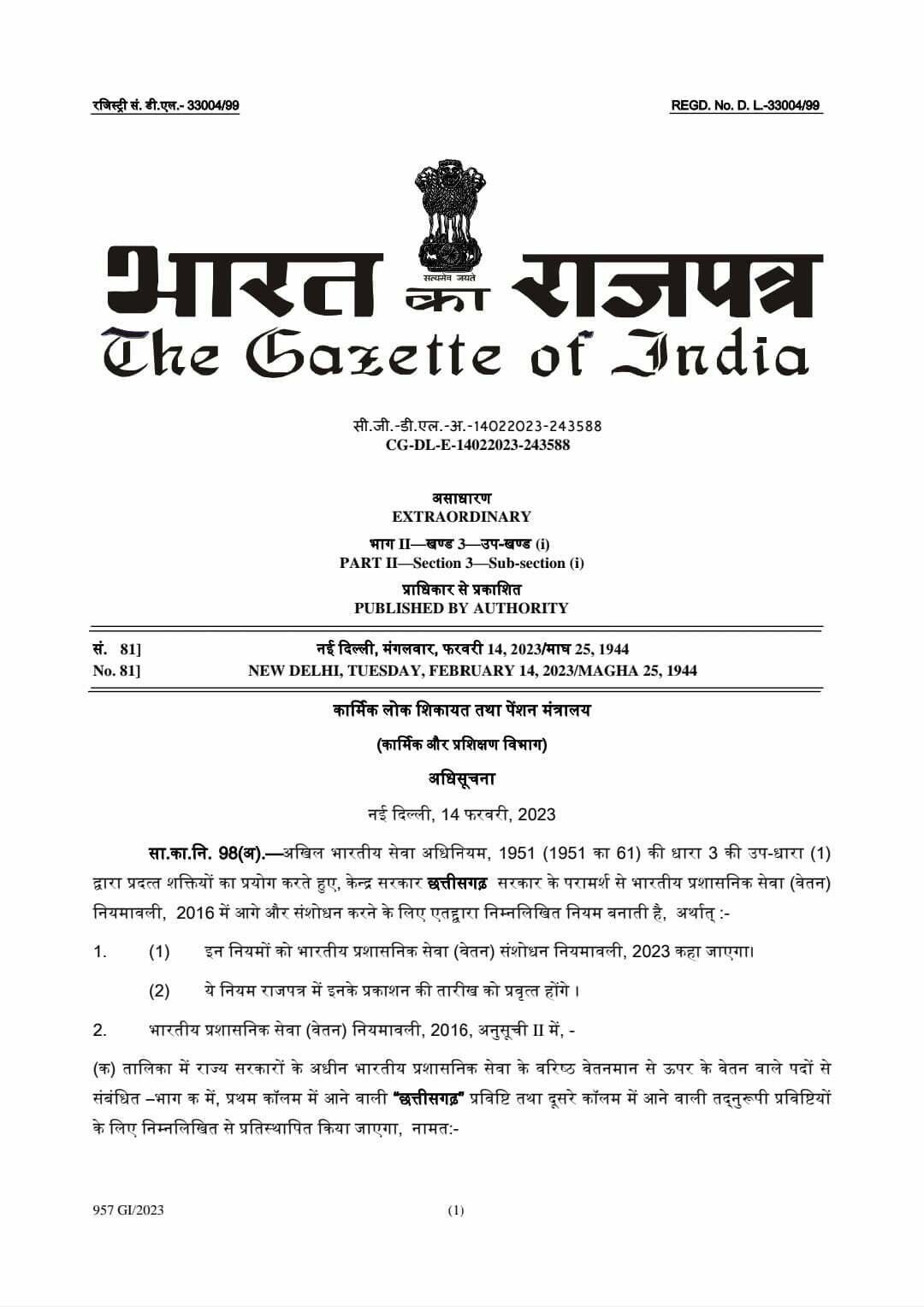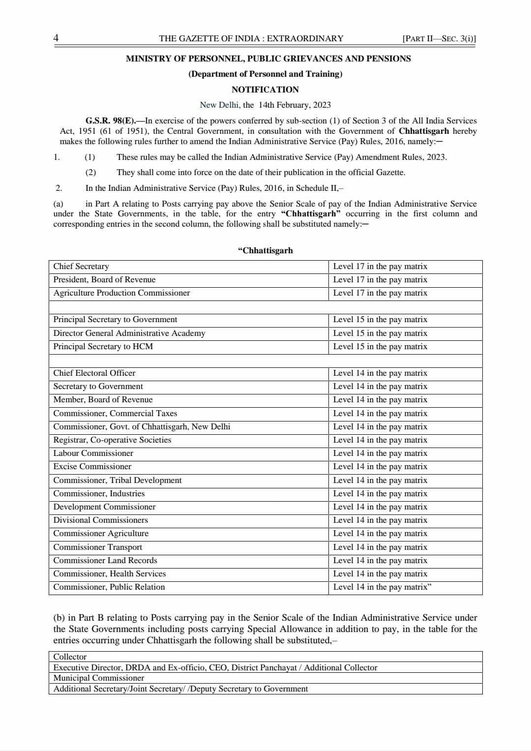 छत्तीसगढ़ में आईएएस कैडर बढ़ गए हैं। आईएएस कैडर की संख्या 178 से बढ़कर 202 हो गई है। रिव्यू में कलेक्टर के 9 पद मिले हैं। राजपत्र में इसका प्रकाशन कर दिया गया है। इससे पहले साल 2016 में आईएएस कैडर में 15 पद बढ़े थे। जिसके बाद संख्या 163 से बढ़कर 178 हुई थी।