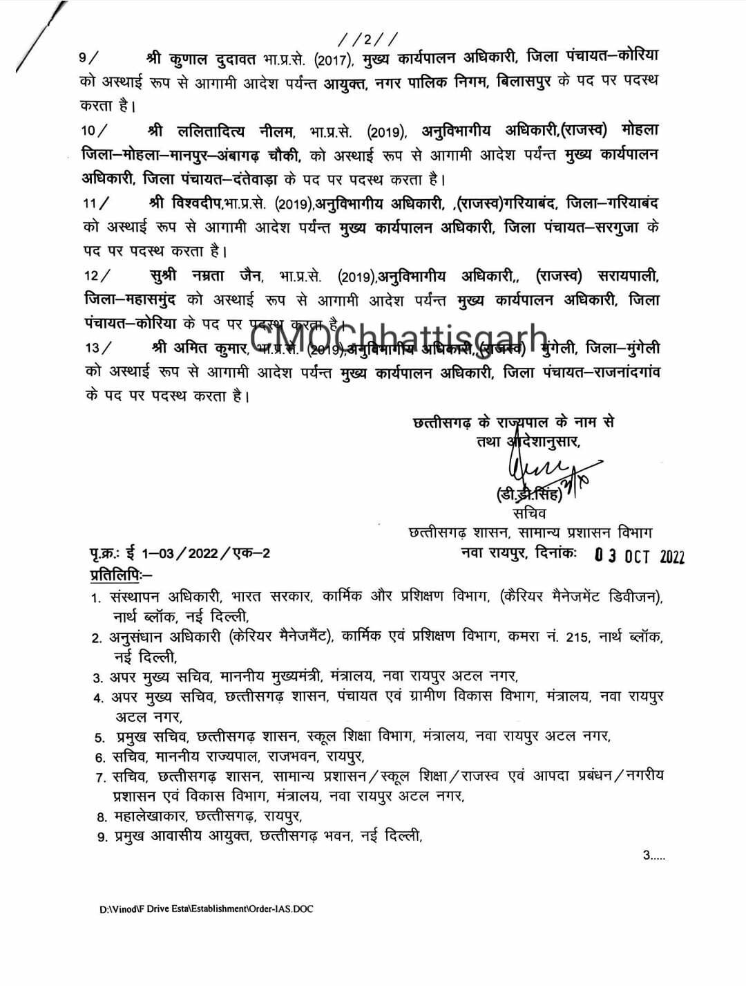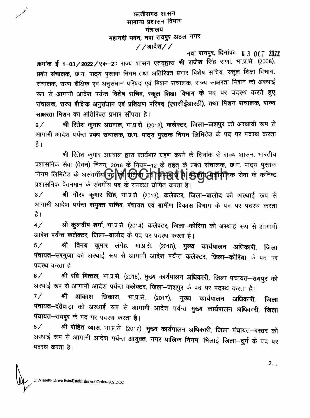 इसे भी पढ़ें : TRANSFER BREAKING : राज्य प्रशासनिक सेवा के 20 अधिकारियों का तबादला, दुर्ग, भिलाई, बिलासपुर सहित 5 निगम कमिश्नर भी बदले गए, देखिए सूची