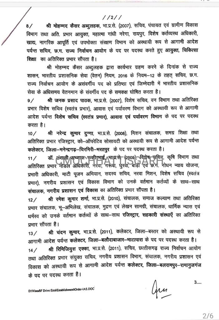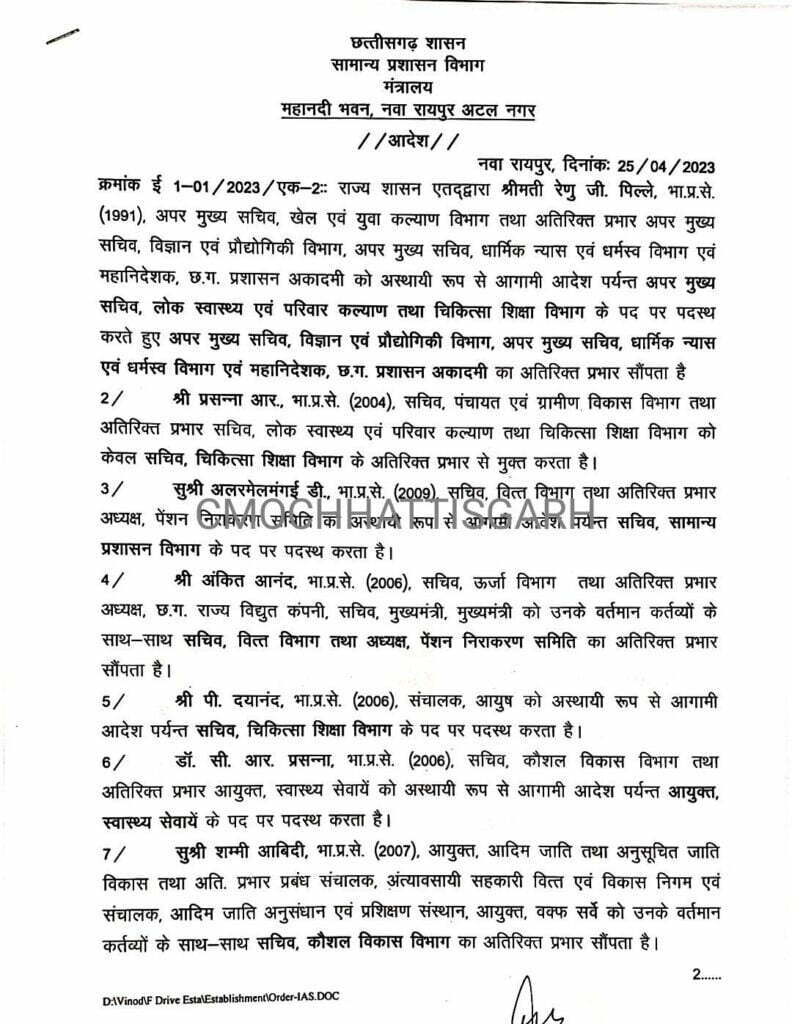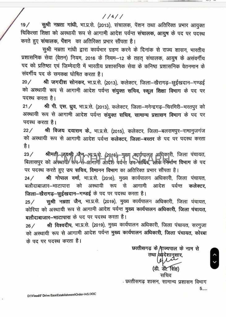 25/04/2023 IAS Transfer: 26 IAS अधिकारियों का तबादला, कई जिलों के कलेक्टर बदले Admin September 26, 2022 राज्य सरकार ने बड़ी प्रशासनिक सर्जरी करते हुए 26 IAS अधिकारियों का तबादला दिया है। वहीं कई जिलों के कलेक्टरों को भी बदला गया है।देखिए सूची Related News: भूपेश कैबिनेट की बैठक में ट्रांसफर पर लिया गया यह निर्णय, पढ़ें पूरी खबर… CG आरक्षण: सुप्रीम कोर्ट ने 58 % आरक्षण पर लगी रोक हटाई, भर्ती प्रमोशन शुरु करने के दिए निर्देश CBI Raid Update: छत्तीसगढ़ में रेलवे दफ्तर में सीबीआई छापा, दूसरे दिन भी कार्रवाई