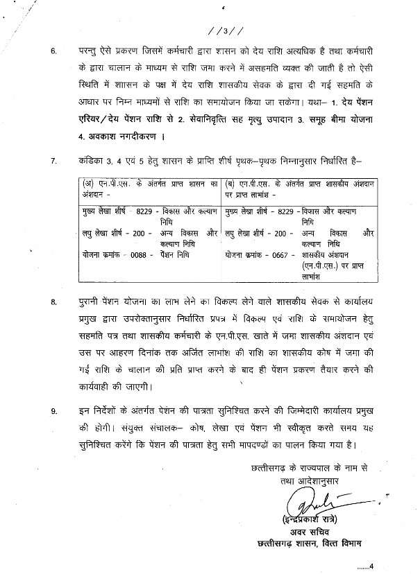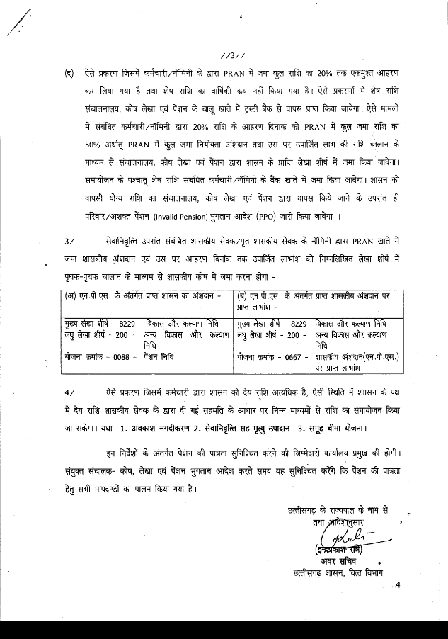 01/03/2023 OPS और NPS को लेकर सरकार ने जारी किए निर्देश, रिटायरमेंट, मृत्यु और अशक्तता में पेंशन का कैसे होगा निर्धारण, पढ़िए Admin September 26, 2022 राज्य सरकार ने ओपीएस और एनपीएस को लेकर निर्देश जारी किया है। जिसमें बताया गया है कि सेवानिवृत्ति, मृत्यु और अशक्तता के मामलों में पेंशन का कैसे निर्धारण किया जाएगा। Related News: OPS पर बड़ा अपडेट: मोदी सरकार ने लागू की Old Pension Scheme! ऐसे मिलेगा फायदा सदन में सिखों पर आपत्तिजनक टिप्पणी, मंत्री शिव डहरिया और चंद्राकर के घर के बाहर हंगामा, लिखित में मांगी माफी School Close: शीतलहर और कड़ाके की ठंड के चपेट में ये जिले, 7 जनवरी तक स्कूल बंद करने का आदेश Tags nps OPS pension