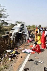 छत्तीसगढ़ में बड़ा सड़क हादसा : मुख्यमंत्री कन्या विवाह के 54 जोड़ों से भरी बस पलटी, मची चीख-पुकार