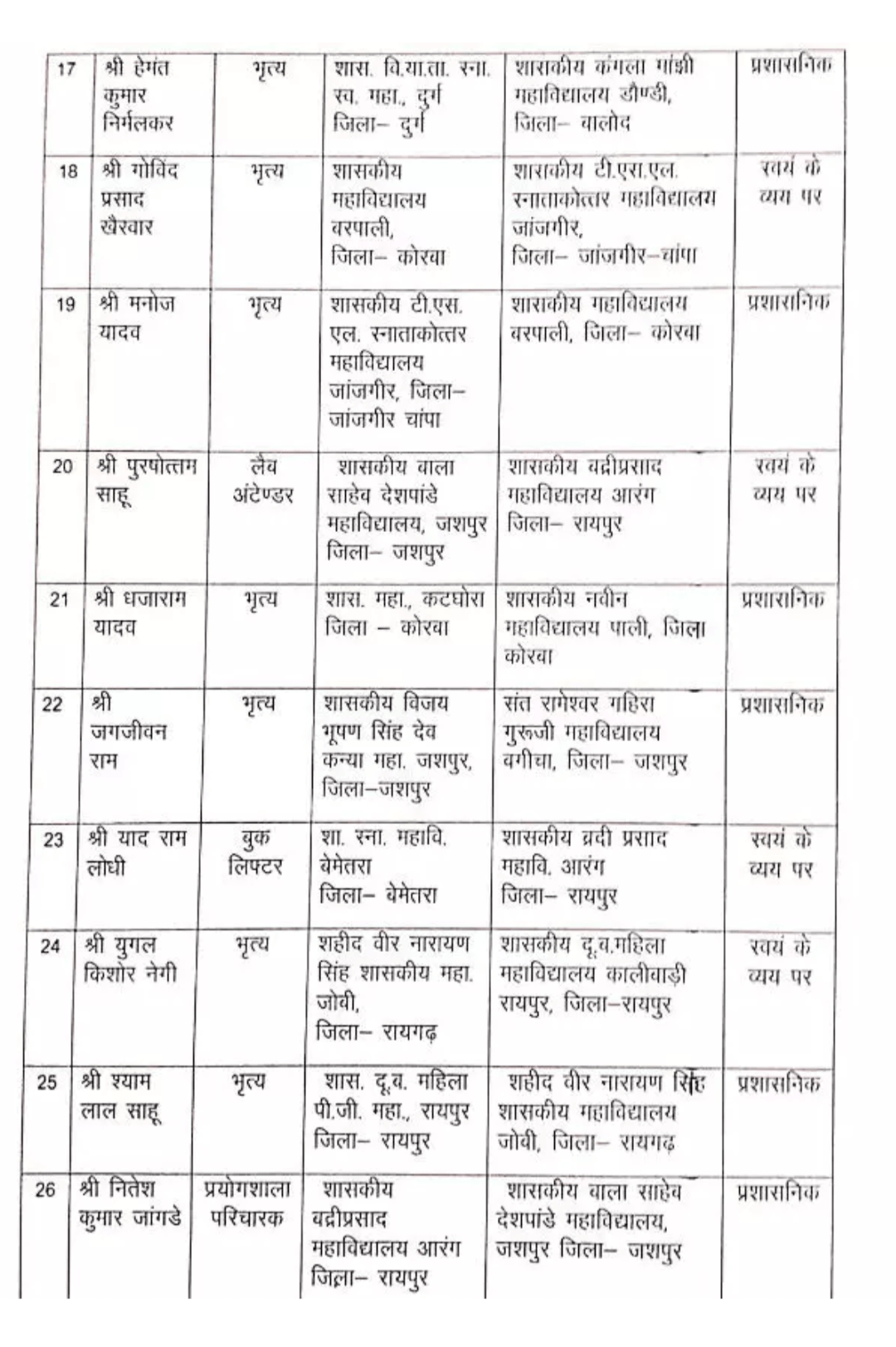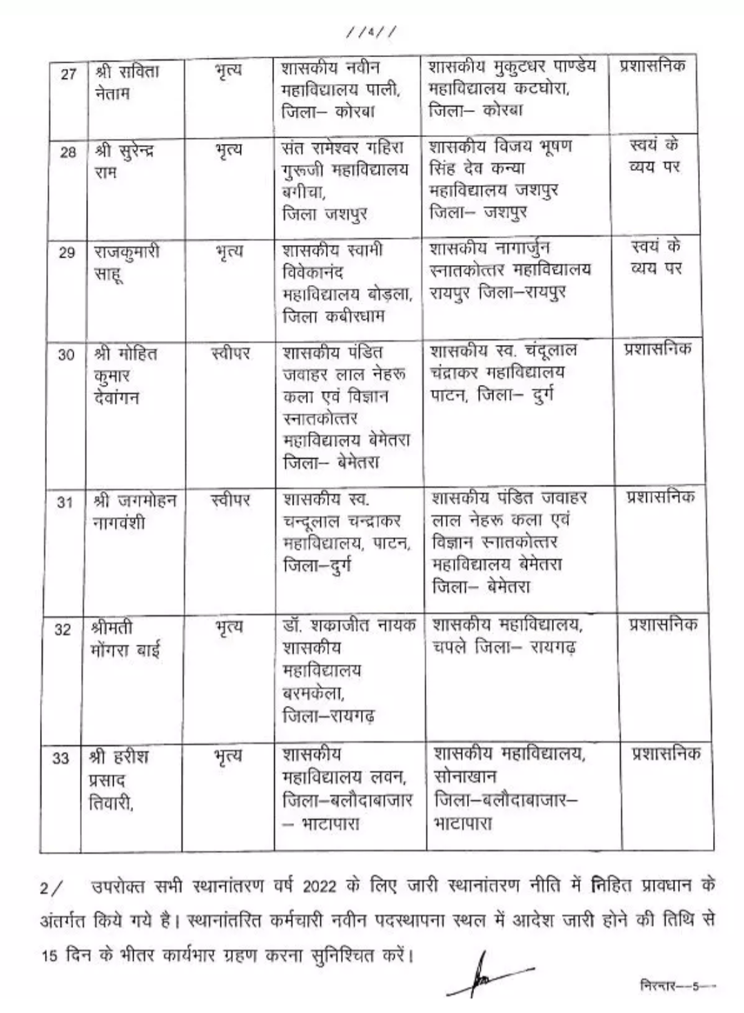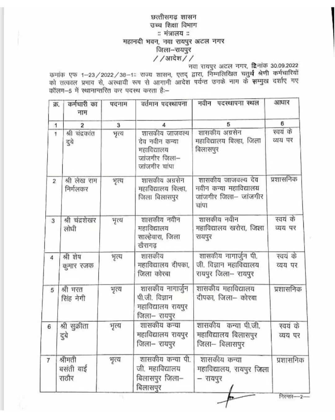 छत्तीसगढ़ में लगातार तबादले का दौर जारी है. इस बार उच्च शिक्षा विभाग में बड़े पैमाने पर तबादला किया गया है. इसमें बड़ी संख्या में अधिकारियों-कर्मचारियों के ट्रांसफर हुए हैं. उच्च शिक्षा विभाग द्वारा जारी लिस्ट में 41 प्रयोगशाला टेक्नीशियन, चतुर्थ श्रेणी के 33 कर्मचारी, 34 लिपिकीय समेत कई कर्मचारियों के नाम शामिल हैं. जिन्हें इधर से उधर किया गया है.