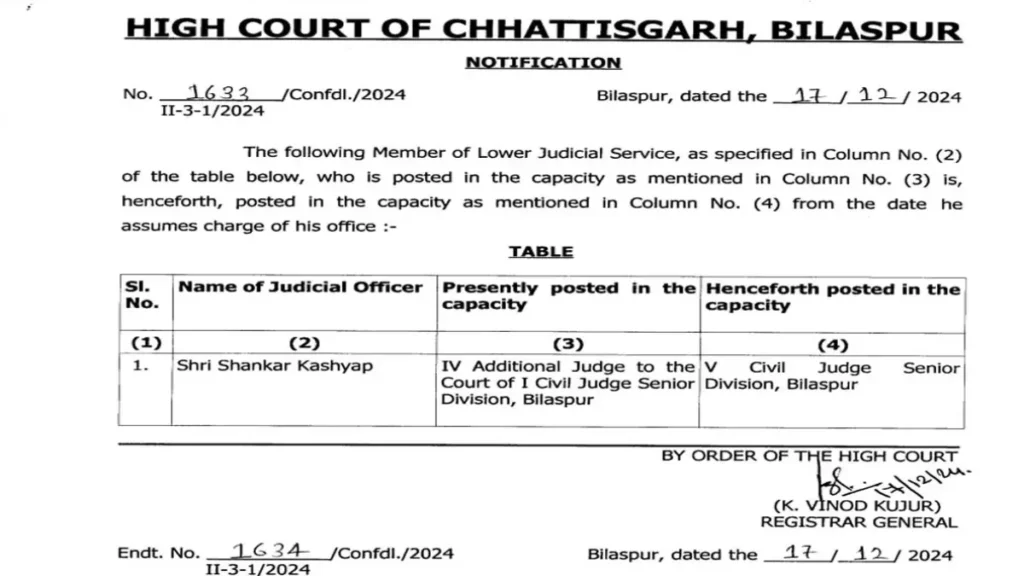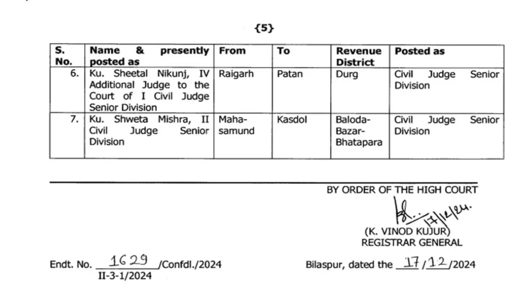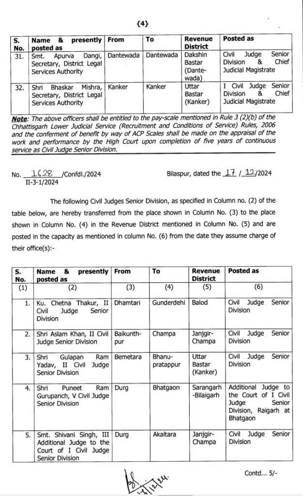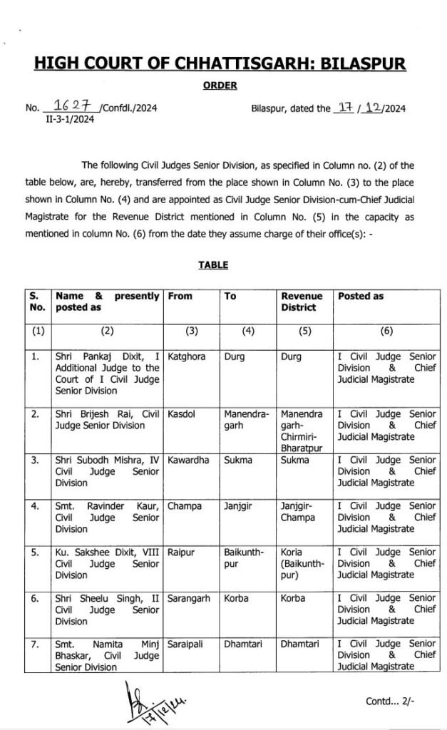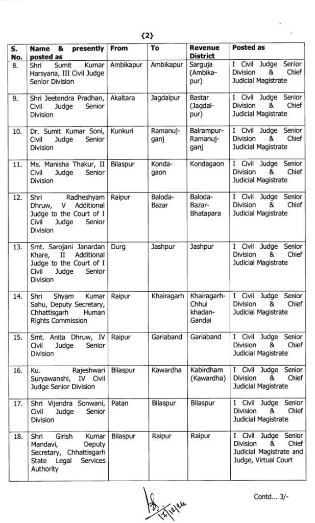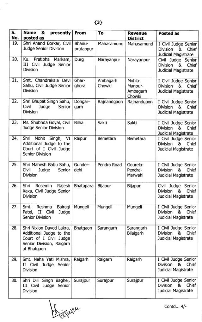 छत्तीसगढ़ हाईकोर्ट ने सिविल जजों का तबादला और प्रमोशन का आदेश जारी किया है। जिसमें कुछ जजों का तबादला और कुछ का प्रमोशन के साथ तबादला किया गया है।