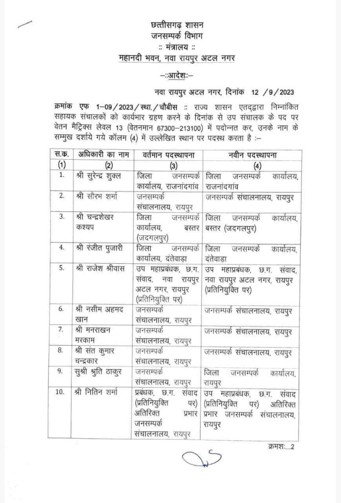 छत्तीसगढ़ जनसंपर्क विभाग में सहायक संचालक के पद पर पदस्थ अधिकारियों को सरकार ने पदोन्नति दी है। इसके साथ ही सरकार ने इन अधिकारियों का तबादला आदेश भी जारी किया है।