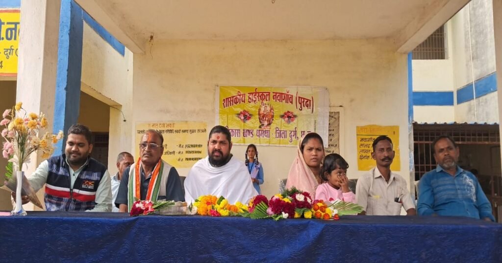 सेवाभावी के लिए प्रसिद्ध ग्राम भेंड़ी के संत गुरुदेव वीरेंद्र कुमार देशमुख ने अपने सेवाभावी कार्यों की कड़ी में एक और कड़ी जोड़ दी है। शिक्षा व स्वास्थ्य के लिए सहयोग करने की योजना के तहत वे ग्राम नवागांव में अपने खर्चे से छत्रपति शिवाजी महाराज कक्ष का निर्माण कर रहे हैं। शुक्रवार को उन्होंने स्वयं उपस्थित होकर इसका पूजन किया और साथ में काम का ठेका देकर तत्काल प्रारंभ भी करवा दिया। इस अवसर पर सरपंच तारिणी नेताम, समाज सेवी मन्नू लाल देशमुख, प्रभारी प्राचार्य तोमन लाल देशमुख, व्याख्याता मधुबाला सिंह, सुषमा सिंह, भारती वर्मा, चतुर्भुज देवांगन, तिलेश्वर देशमुख प्राथमिक शाला नगपुरा, शैलेंद्र पारकर एचएम प्राथमिक शाला नवागांव, राजेंद्र अहीर प्राथमिक शाला नवागांव, प्रीति कन्नौजे प्राथमिक शाला पथरिया, शिक्षक हेमलता देवांगन,ज्योति ठाकुर आदि उपस्थित थे।