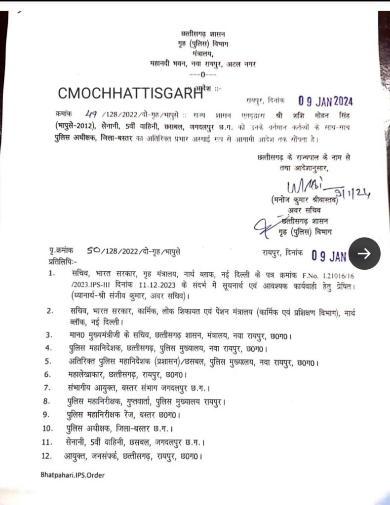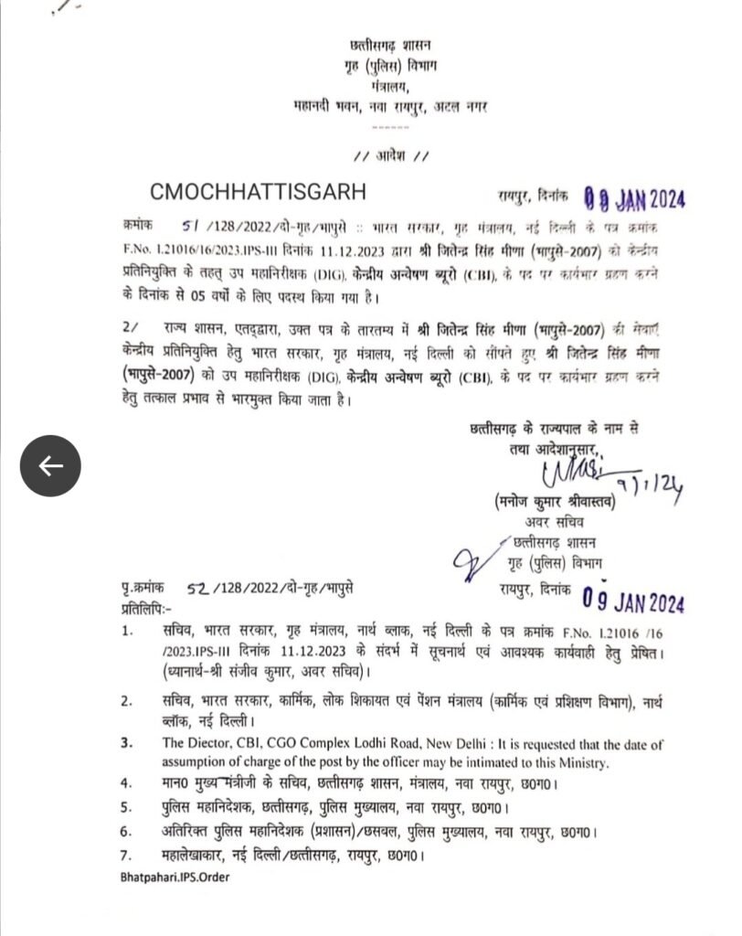 Breaking: शशिमोहन बस्तर एसपी, मीणा CBI के लिए रिलीव, IAS सुनील जैन को इस विभाग की जिम्मेदारी