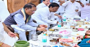 रायपुर। मन की बात कार्यक्रम के उपरांत छत्तीसगढ़ भाजपा द्वारा आयोजित टिफिन मीटिंग में मुख्यमंत्री विष्णुदेव साय शामिल हुए। इस अवसर पर मुख्यमंत्री साय ने अपने साथ लाए टिफिन से भजिया और टमाटर की चटनी कार्यकर्ताओं को स्वयं परोसी और सभी कार्यकर्ताओं के साथ बैठकर भोजन किया। आयोजन में संगठन की आत्मीयता स्पष्ट रूप से देखने को मिली कैबिनेट मंत्री केदार कश्यप फरा, विधायक पुरंदर मिश्रा धुसका-बड़ा, प्रदेश महामंत्री अखिलेश सोनी ठेठरी, प्रदेश कार्यालय मंत्री अशोक बजाज चौसेला और मोना सेन खुरमी जैसे पारंपरिक छत्तीसगढ़ी व्यंजन लेकर टिफिन मीटिंग में पहुँचे। महिला मोर्चा की कार्यकर्ताओं ने भी विविध स्थानीय व्यंजनों से आयोजन को और समृद्ध बनाया।