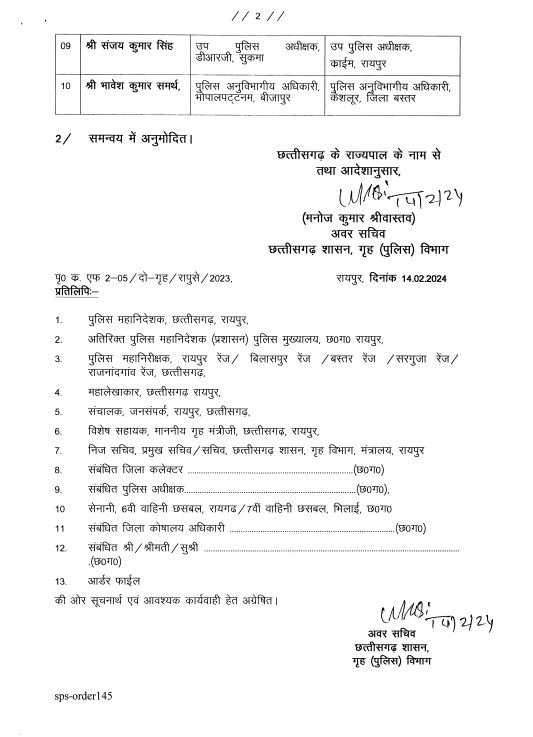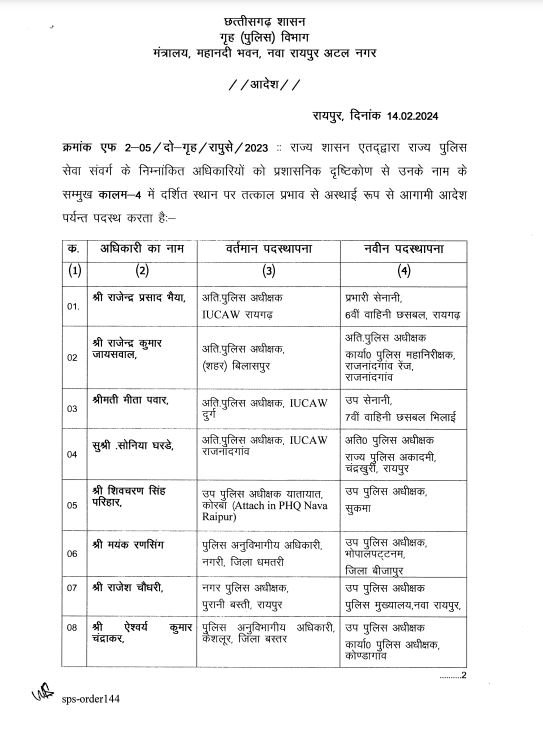 15/02/2024 Transfer Breaking: पुलिस विभाग में तबादला, कई जिलों के ASP और DSP बदले, देखिए लिस्ट Admin September 26, 2022 छत्तीसगढ़ में सरकार ने राज्य पुलिस सेवा के अधिकारियों का तबादला किया है। गृह विभाग ने एडिशनल एसपी और डीएसपी रैंक के 10 अधिकारियों का तबादला आदेश जारी किया है। संजय सिंह को रायपुर क्राइम ब्रांच की कमान सौंपी गई है। Related News: Big Breaking: नंदकुमार साय कांग्रेस में हुए शामिल, CM भूपेश और मोहन मरकाम ने दिलाई सदस्यता ED Raid: छत्तीसगढ़ में CM के बेहद करीबियों के ठिकानों पर ED का छापा, भूपेश बघेल ने बताया बर्थडे गिफ्ट सीएम भूपेश ने ED, IT और CBI को बताया लोकतंत्र के लिए खतरा, अडानी पर दिया ये सनसनीखेज बयान