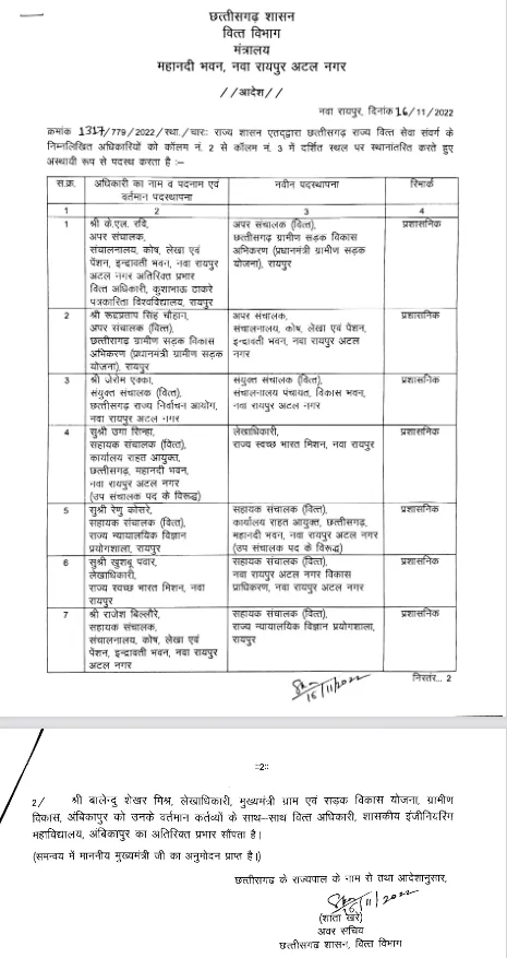 CG TRANSFER BREAKING: वित्त विभाग में बड़े पैमाने पर हुए अधिकारियों का तबादला, यहां देखें पूरी लिस्ट…