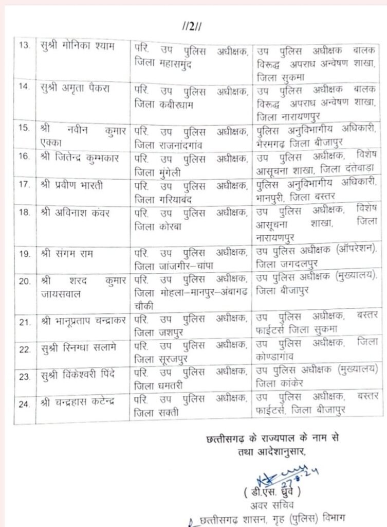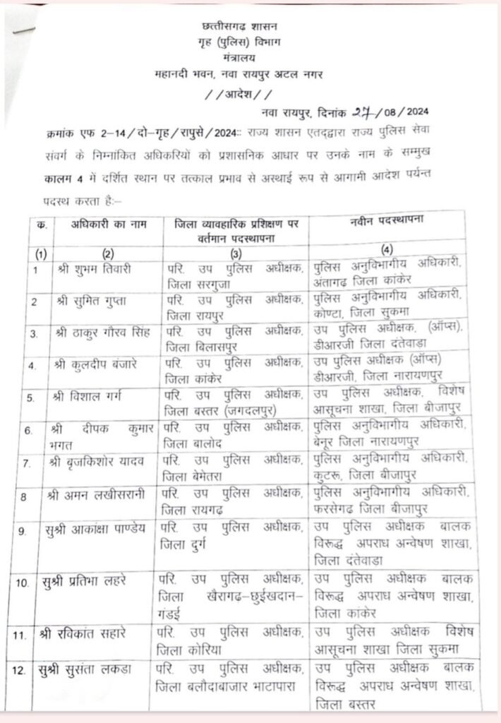 Police Transfer: CG में दो दर्जन DSP को मिली नई पोस्टिंग, सभी को भेजा बस्तर, देखिए लिस्ट