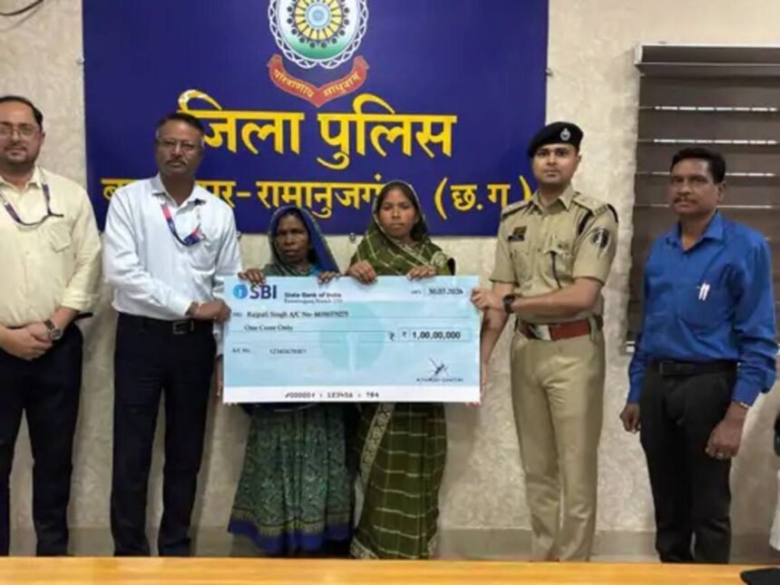 बलरामपुर-रामानुजगंज। जिले में पदस्थ दिवंगत आरक्षक शिवबचन सिंह की पत्नी वर्षा रानी सिंह को छत्तीसगढ़ शासन की ‘पुलिस सैलरी पैकेज’ योजना के तहत 1 करोड़ रुपए का जीवन बीमा लाभ प्रदान किया गया। यह सहायता राशि भारतीय स्टेट बैंक (एसबीआई) के अधिकारियों और पुलिस अधीक्षक बलरामपुर की मौजूदगी में उनके परिजनों को सौंपी गई।